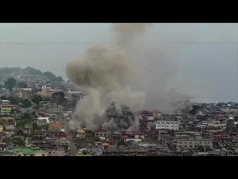 Drone footage shows explosions and destroyed buildings in Marawi City, where