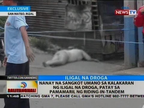 Isang ginang ang patay sa pamamaril sa San Mateo Rizal. Ihinatid umano ng biktima ang kanyang anak sa paaralan at ilang sandali lang matapos maihatid ay binaril siya ng mga suspect na Riding In Tandem . Nang suriin ang biktima ay may nakitang mga droga sa bulsa nito.